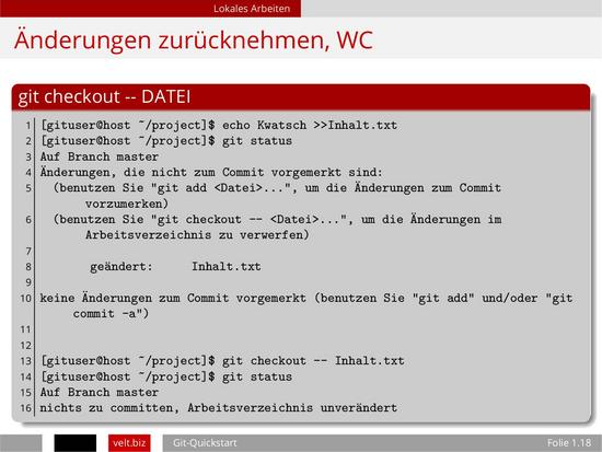 - Zurück: 17. Vergangene Commits ansehen, Diffs mit Hashes