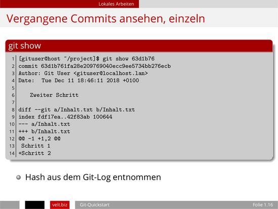 17. Vergangene Commits ansehen, Diffs mit Hashes
